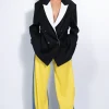 Crafted from woven wool, this black oversized blazer features a white contrasting collar, two side pockets and double-breasted button fastening.