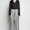 Experience the power of these high-waisted, black and white striped linen wide-leg trousers with front slit pockets as you make a bold fashion statement!