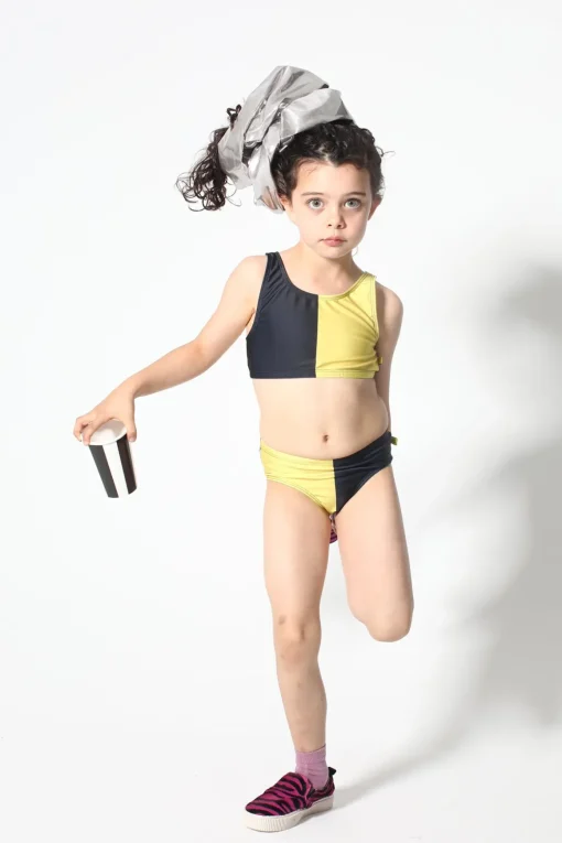 This bikini set featuring a black and yellow briefs and strap top with an 'U' neckline – elasticity to boot! Dive into summer with this swimwear!
