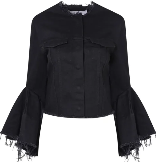 This denim classic jacket is fitted and finished with bell sleeves. Its frayed edges, round neckline, front button fastening and two chest pockets create the ultimate look.