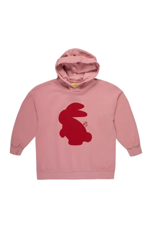 This comfy pink fleece pullover has a huge red bunny silhouette, plus elasticized cuffs and hems, perfect for the lil' ones!