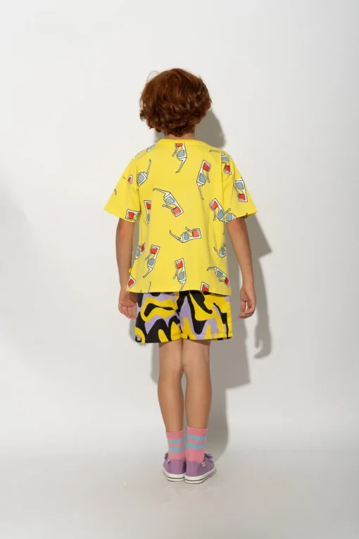 Make a splash in these playful dark wavy print swimwear shorts, featuring a comfy elastic waistband – perfect for getting your kid on!