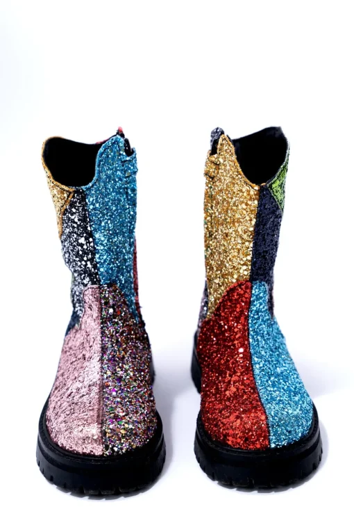 Glitter leather ankle boots with side zip for easy-on and a black rubber sole for stompin' around. Kid-approved!