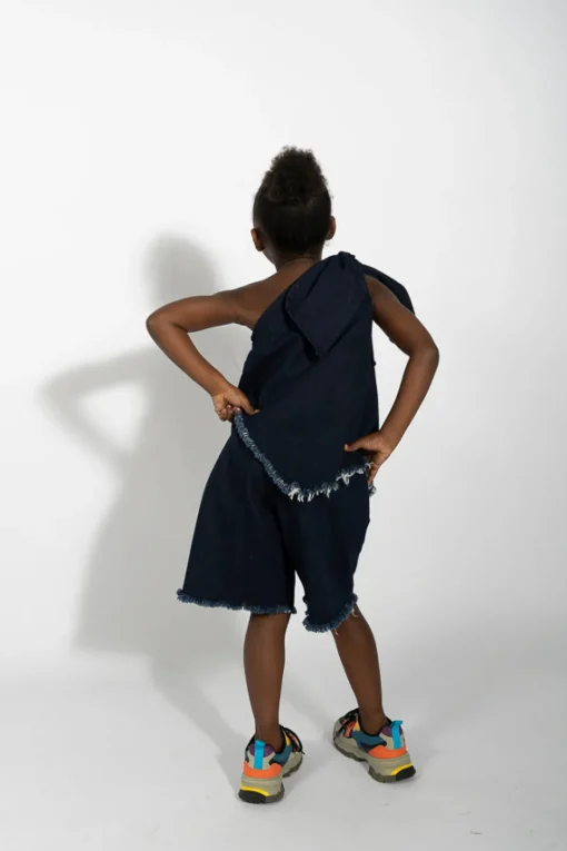 Experience style and comfort with these navy denim classic shorts. Featuring a wide leg design, elastic waist and raw hem for an edgy look.
