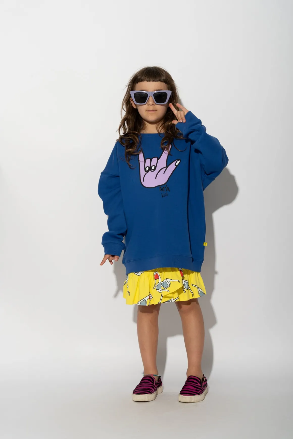 Cozy and cute, this blue crew neck sweatshirt with a hand print is perfect for your little one! Featuring soft fleece cloth, ribbed neck and cuffs and a flattering hem.