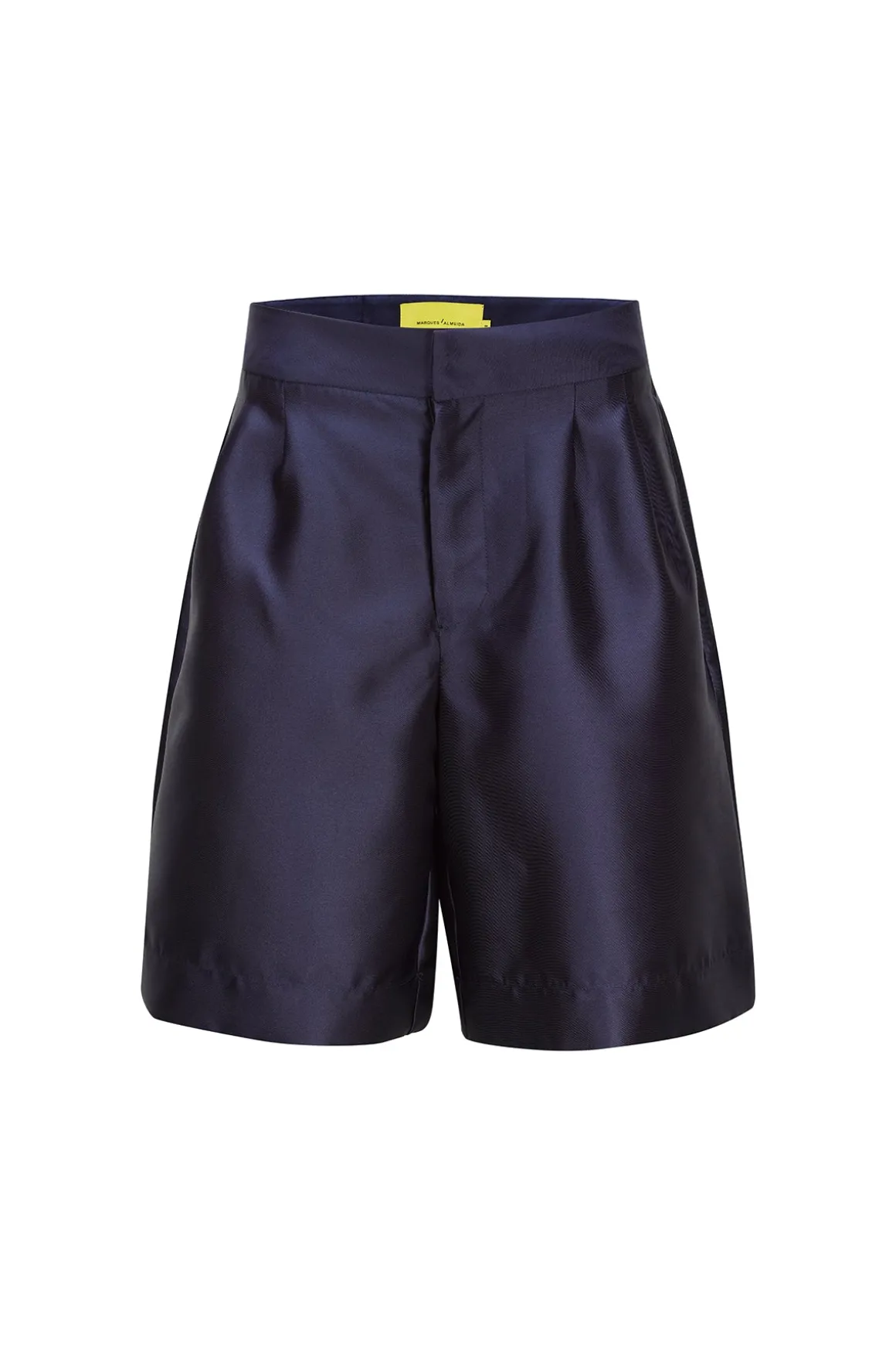 These navy skater shorts are designed to hit just above the knee, feature two convenient side pockets and a front zip and button closure.