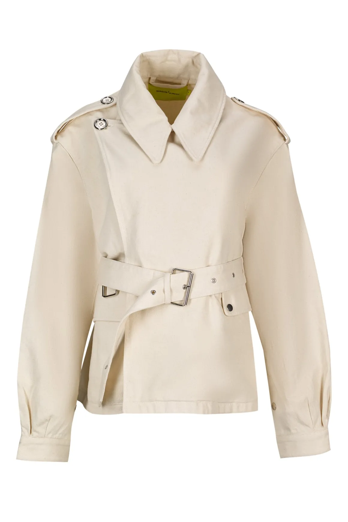 Wrap yourself in our Off-white Cropped Trench Coat. The oversized, cropped design exudes effortless style while the waist belt fastening adds a touch of sophistication. Made from high-quality off-white drill, this trench coat is a must-have!