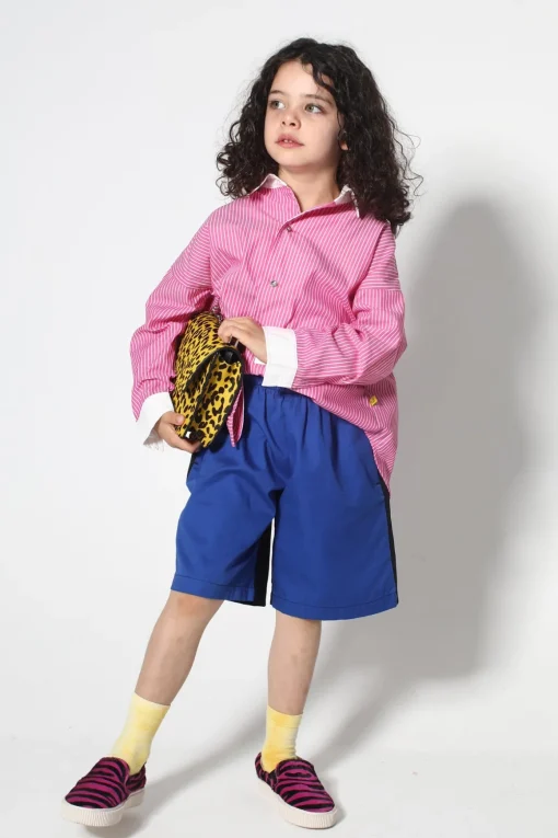 This comfy kid-sized shirt has pink and white stripes, long sleeves, a white point collar and fold-up white cuffs. No need to be a grown-up when you're styling in this top!