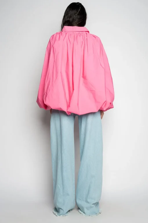 Crafted from pink shirting fabric, this button-up shirt is designed with balloon sleeves and two chest pockets. A stylish addition to any wardrobe!