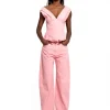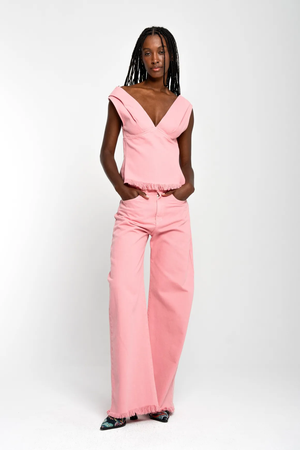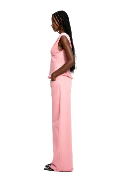 Our Pink Drill Boyfriend Trousers feature a classic M'A 5 pocket style, a raw hem, and a secure button and zipper closure. Stand out in style with these must-have bottoms.