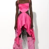 A covetable pink silk dress with a cut out waist and an elasticized back will turn heads!
