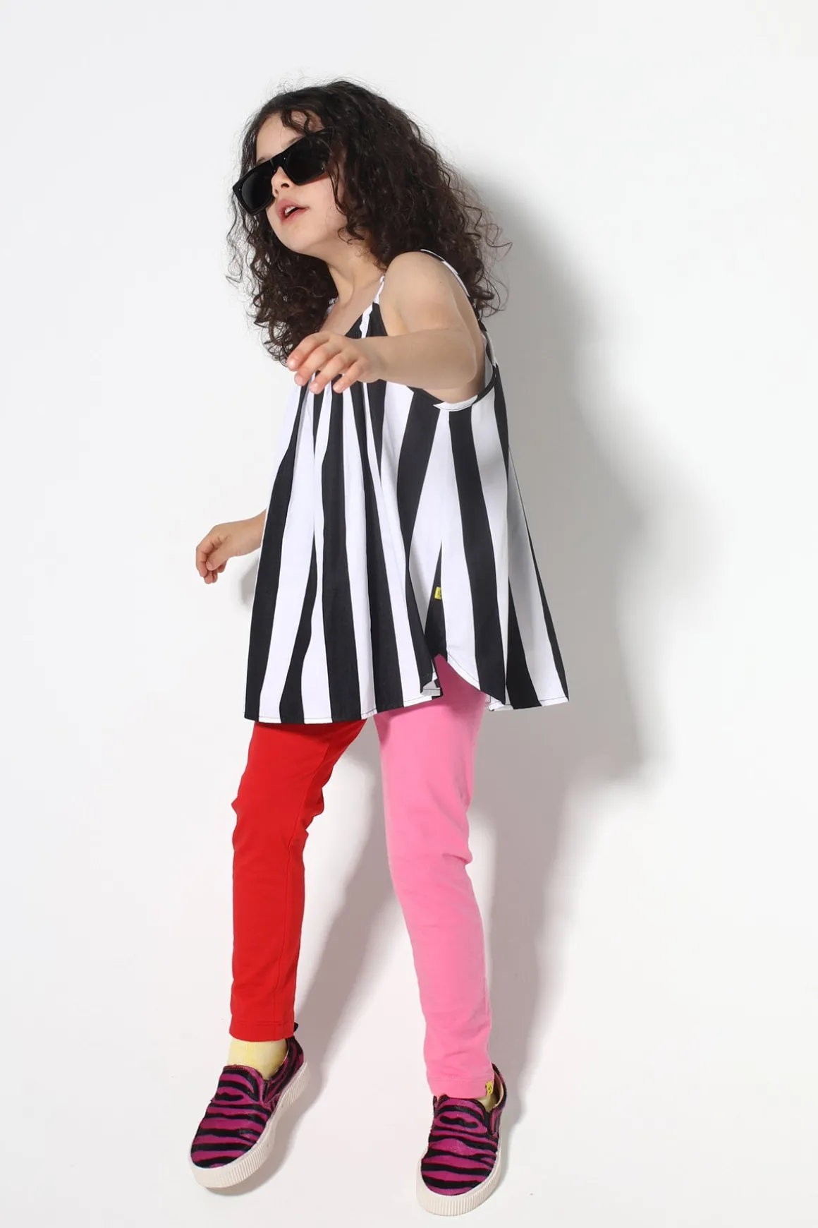 Get your kiddo ready to rock these leggings in red and pink organic cotton with an elastic waist for all-day comfort.