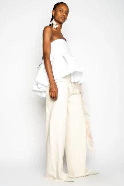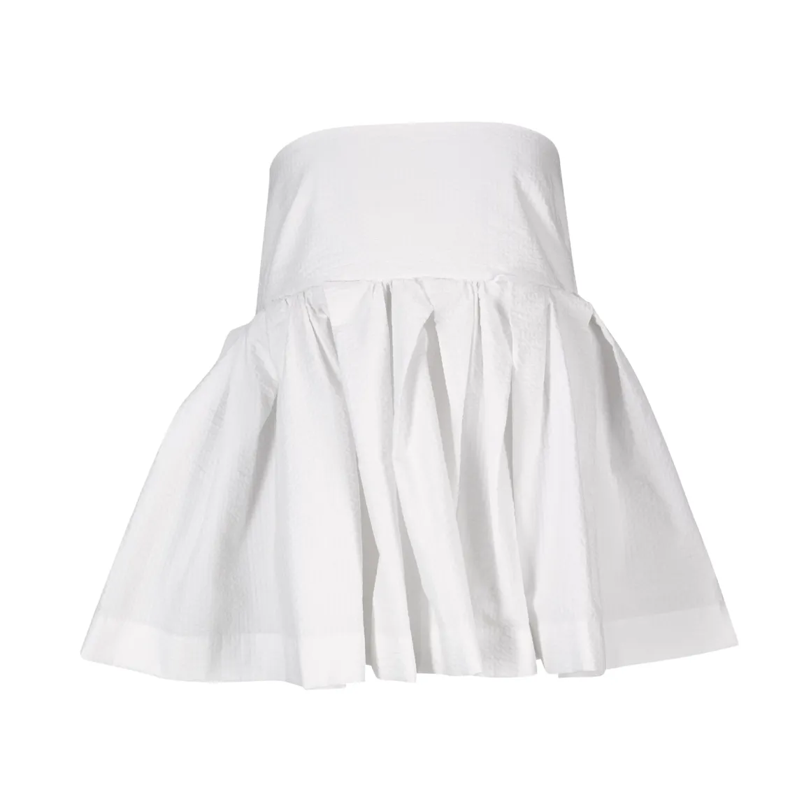 This white, strapless top is crafted from textured cotton fabric and features a flattering peplum hem. The look is complete with a back tie knot that allows you to adjust as you want!