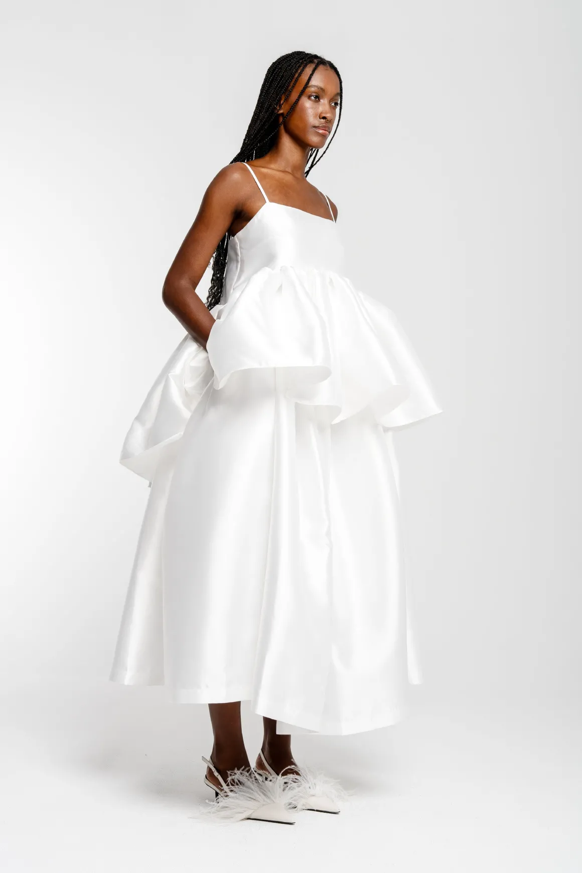 Transform your look into something truly special with our White Strappy Puff Top. Made with mikado fabric, this top adds a touch of elegance and sophistication. The fun puff hem adds a playful and stylish element, making you stand out from the crowd. Perfect for brides looking for a unique and stunning piece for their special.