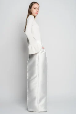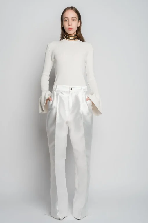 White wide-leg trousers made from mikado, with a button and zipper closure, two front pockets and a wide-leg silhouette with center pleats to complete a classic fit.