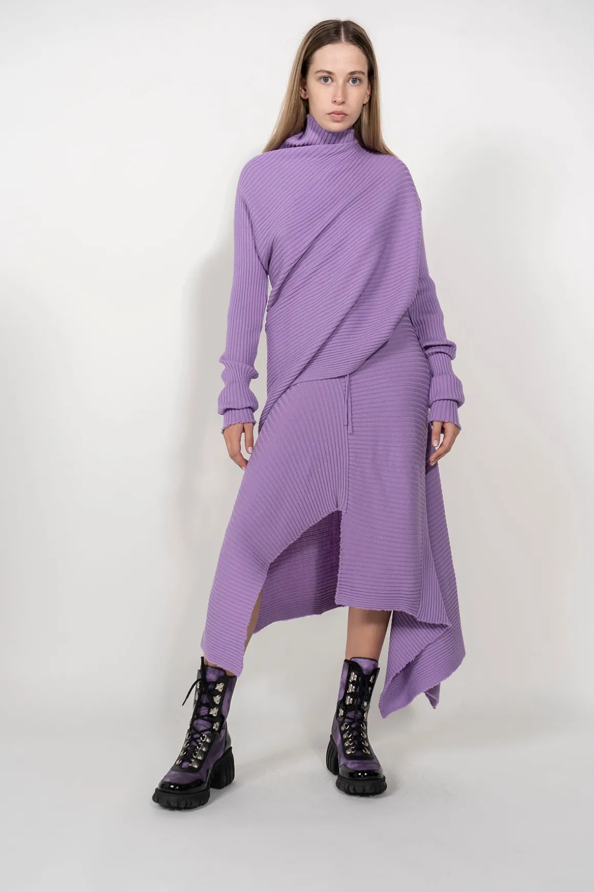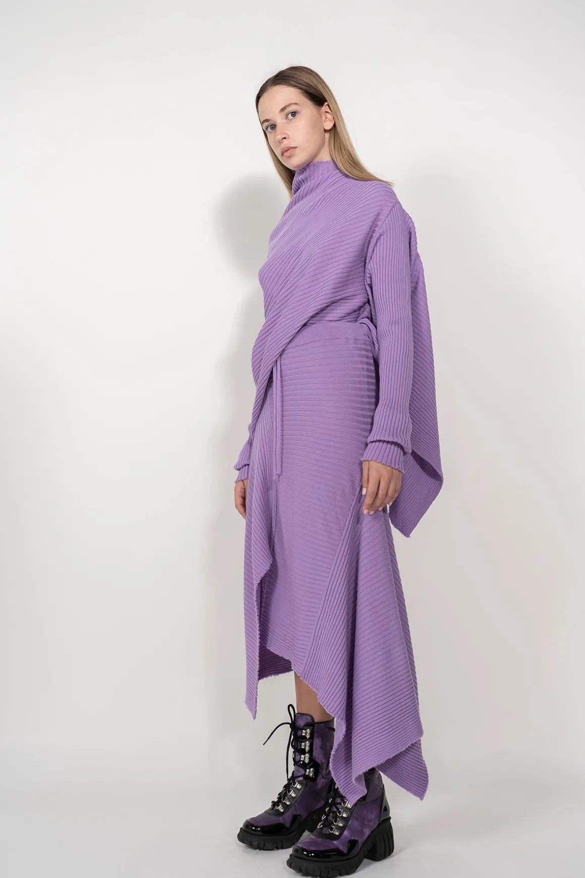 This merino wool skirt adds texture and comfort to your outfit with its ribbed structure. Its signature M'A raw hemlines create an asymmetrical and draped silhouette.