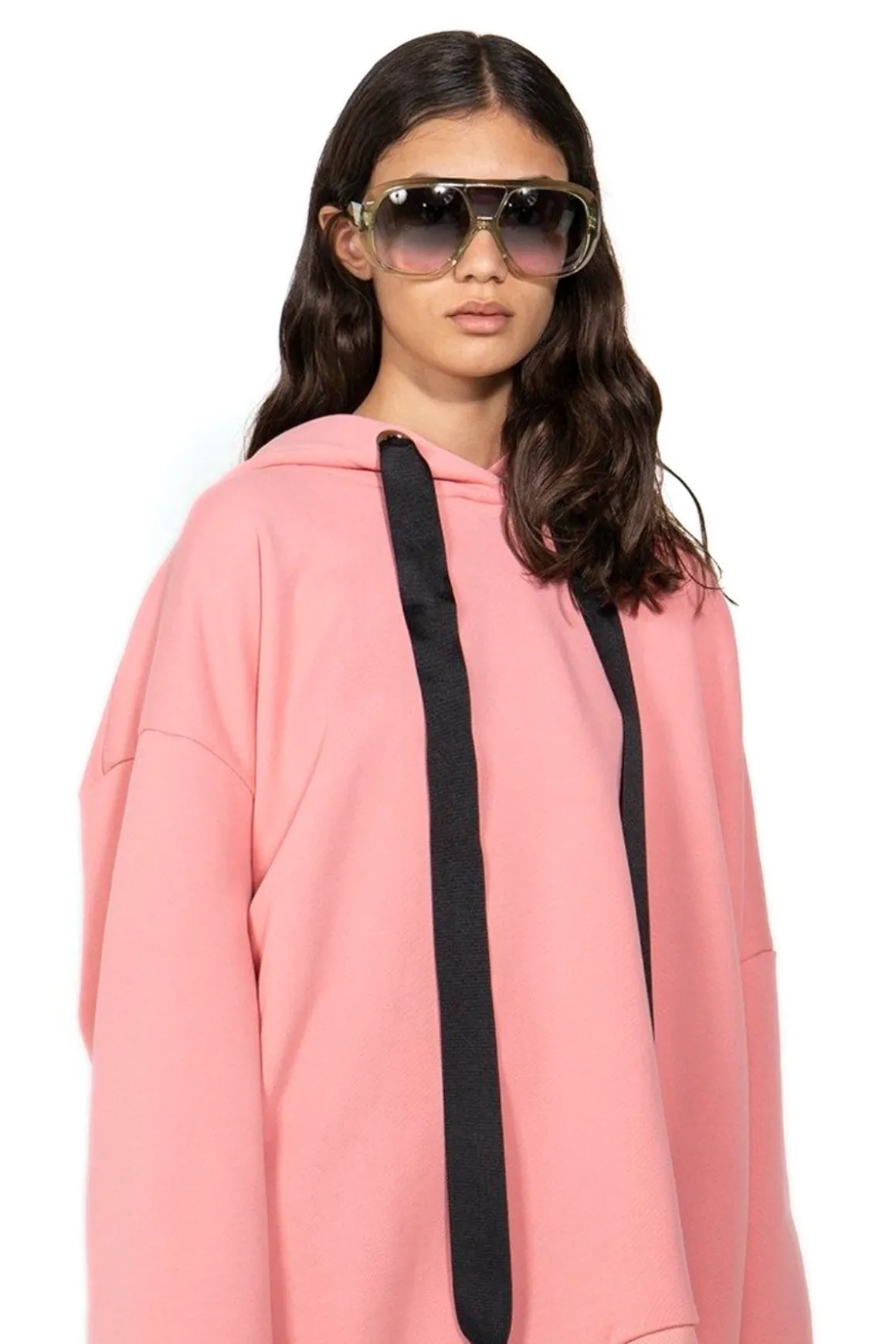 These oversized aviator sunglasses boast vibrant green frames and striking black-to-clear gradient lenses, sure to make a modern yet classic statement.