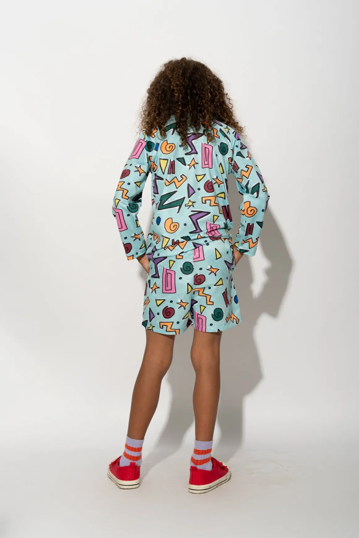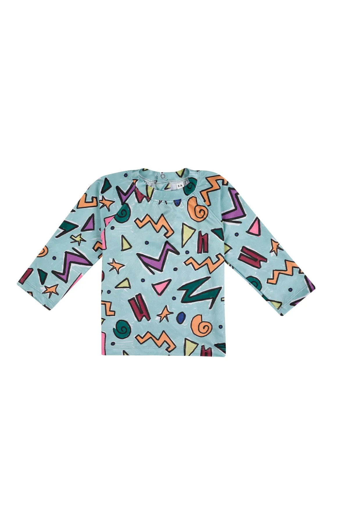 Let your kiddo ride the waves in style with our turquoise squiggle print swim top with long sleeves and a round neckline. It's the perfect way to make a statement while keeping your skin protected (and looking cute, too!).